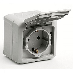 Розетка с заземляющим контактом и защитной крышкой. Изготовлена в сером цвете. При правильном подключении может использоваться для включения нагрузки до 16А*250В. Розетка выполнена в цельном корпусе серого цвета из АБС-пластика и не требудет дополнительных установок. Может применяться в местах где нет скрытой проводки или установка наружного механизма оправдана.