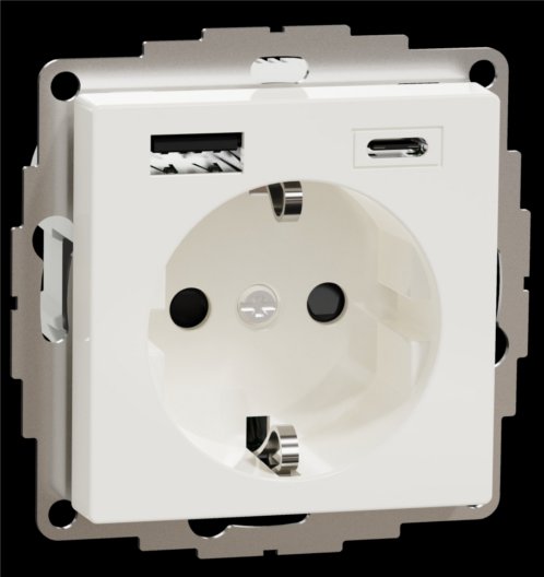 Розетка с з/к 16А + USB type A+C 3.0A, авт. клеммы, SM (полярно-белый) MTN2367-0319