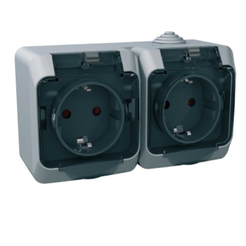 Двойная розетка 16А прозрачная кришка внешний монтаж IP44 Cedar Plus Серый Schneider