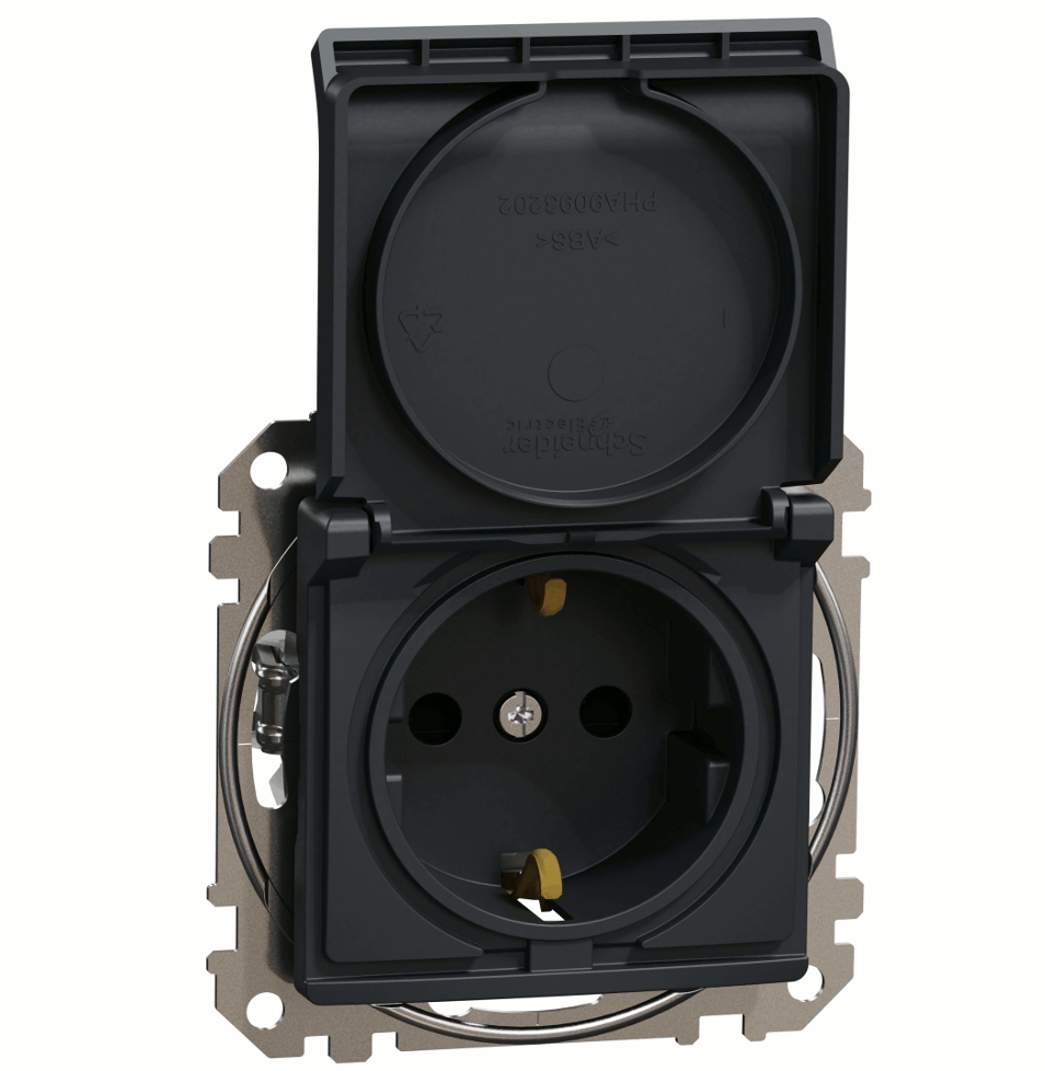 Розетка с заземлением 16A шторками и крышкой, Sedna Design (Черный) SDD114024