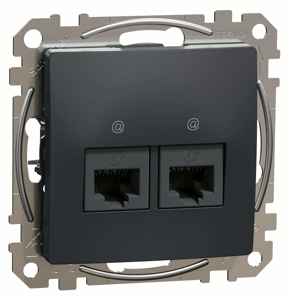 Розетка компьютерная двойная 2*RJ45 cat.5e UTP не экранированная, Sedna Design (Черный) SDD114452
