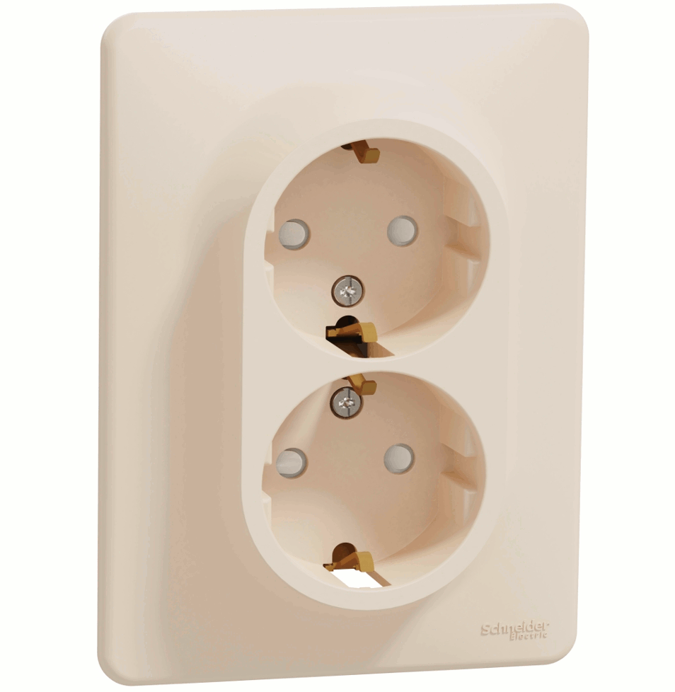 Розетка двойная с заземлением 16A и шторками, Sedna Design (Бежевый)