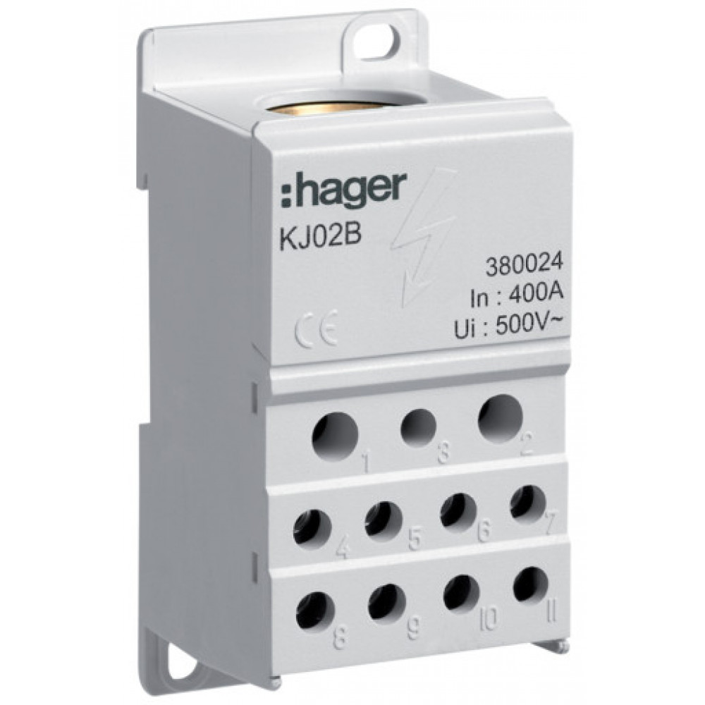 Блок розгалужуючий 400А, ввод 1х150мм2, вихід 2х25х16 і 4х10мм2, KJ02B