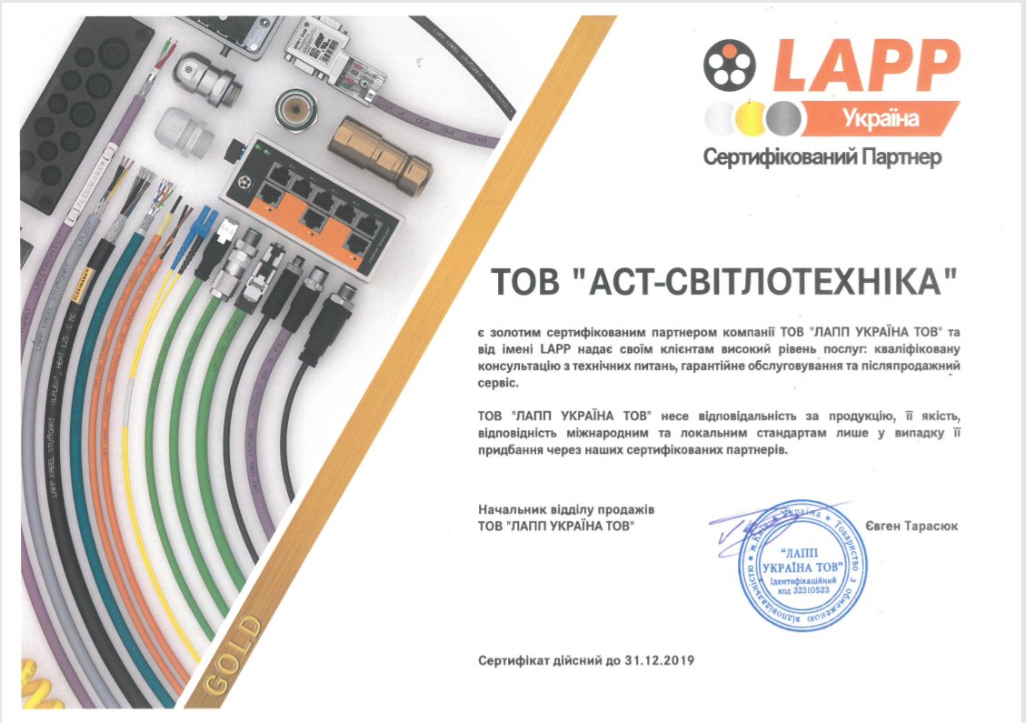 Официальный сертифицированный партнёр компании ЛАПП в Украине