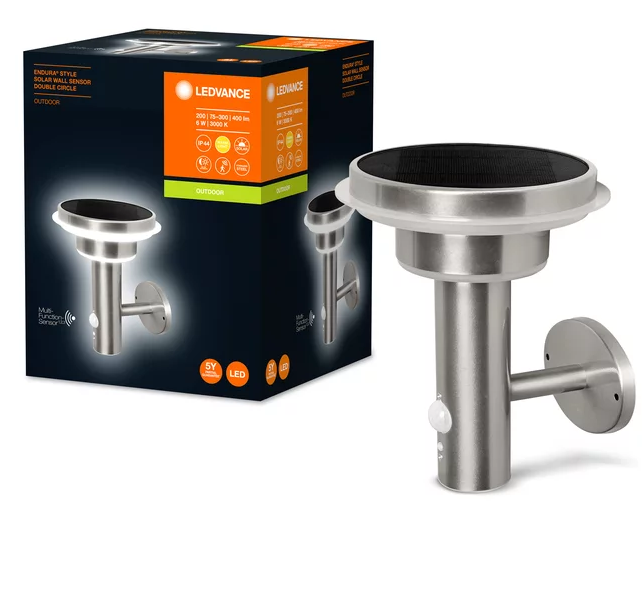 ENDURA Style Solar Wall Sensor Double Circle 6W Stainless Steel IP44 4058075392687 LEDVANCE 4058075392687
