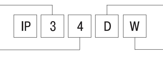 Код IP складається з двох цифр і може бути розширений додаванням літери, якщо захист від дотику до струмоведучих частин більше, ніж показано першою цифрою. Інша додаткова буква демонструє додаткову інформацію щодо захисту матеріалу.