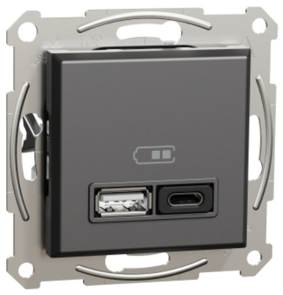 Розетка USB тип A+C 3A 45Вт без рамки вхід USB типу A5В 1,5А та USB типу C20В3А Антрацит Asfora Schneider Electric EPH2700471 EPH2700471